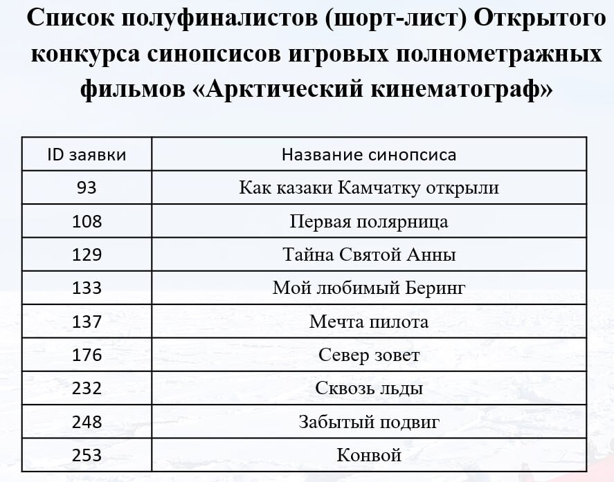 📣 Дорогие друзья, первый этап отбора в Открытом конкурсе синопсисов игровых полнометражных фильмов в рамках проекта «Великий Северный поход. Арктика как искусство» успешно завершён!